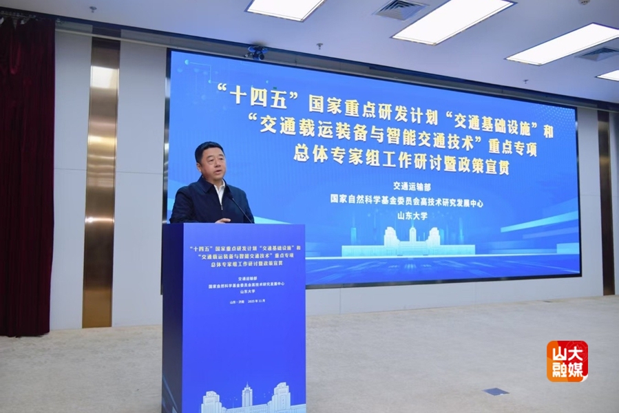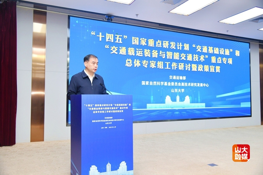 11月14日至15日,“十四五”国家重点研发计划“交通基础设施”和“交通载运装备与智能交通技术”重点专项总体专家组工作研讨暨政策宣贯活动在山东大学中心校区举行。校长、中国工程院院士李术才,国家自然科学基金委员会高技术研究发展中心副主任闫金定,山东省科学技术厅副厅长梁恺龙,副校长王美琴出席开幕式。